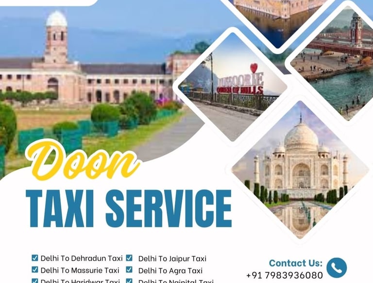 We provide taxi services between Dehradun, Delhi, Haridwar, Rishikesh, and Mussoorie.